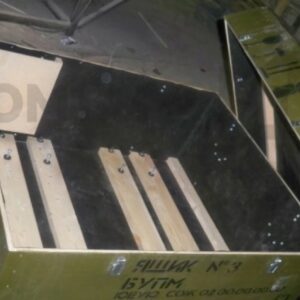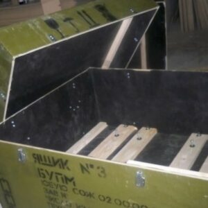 На поддоне имеются посадочные места для перевозимой продукции. Ящик крепится с поддоном с помощью 4 — ёх замков. Маркировка тары выполнена по чертежам заказчика.